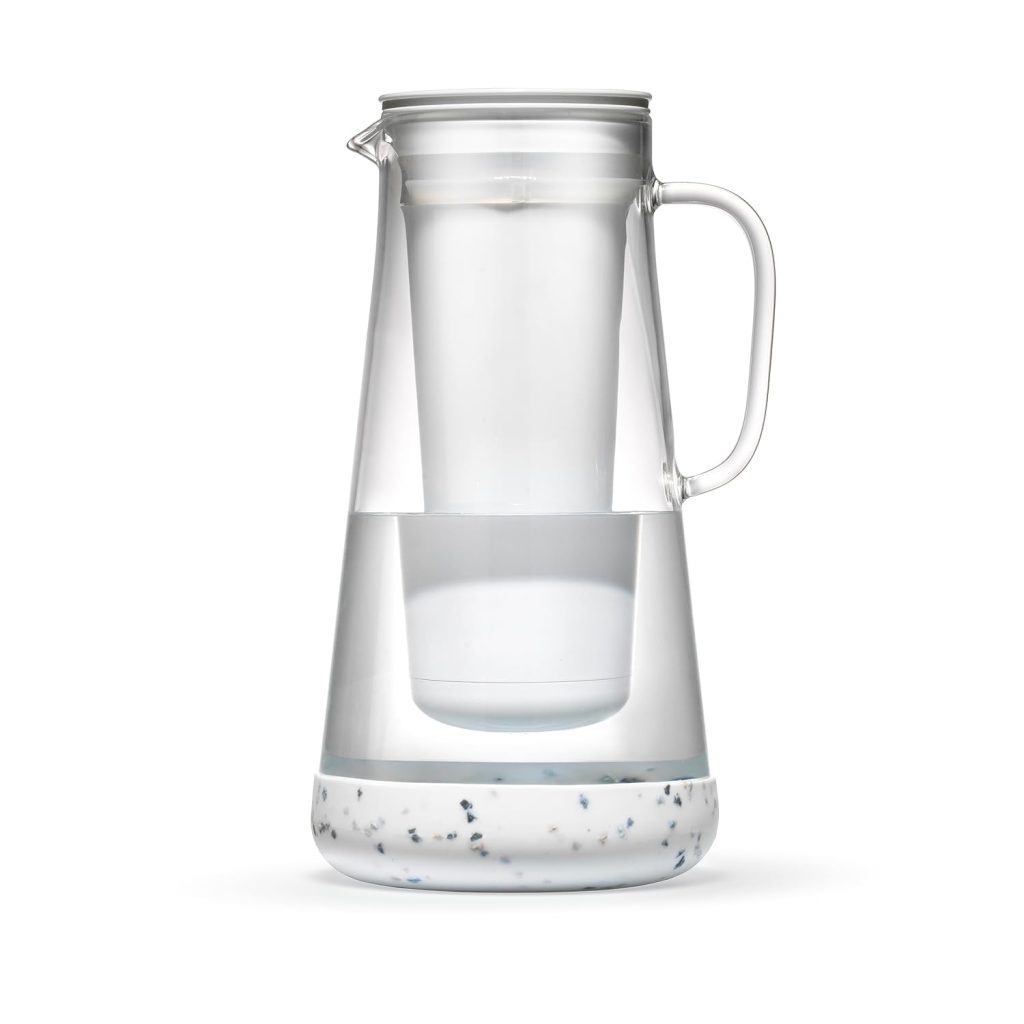 We have to be completely honest here. The LifeStraw Home Glass Pitcher is not 100% plastic-free. The pitcher body is gorgeous handblown borosilicate glass, but the internal filter housing is made of plastic. So why is it on this list? Because it is the absolute best pitcher on the market for removing microplastics.