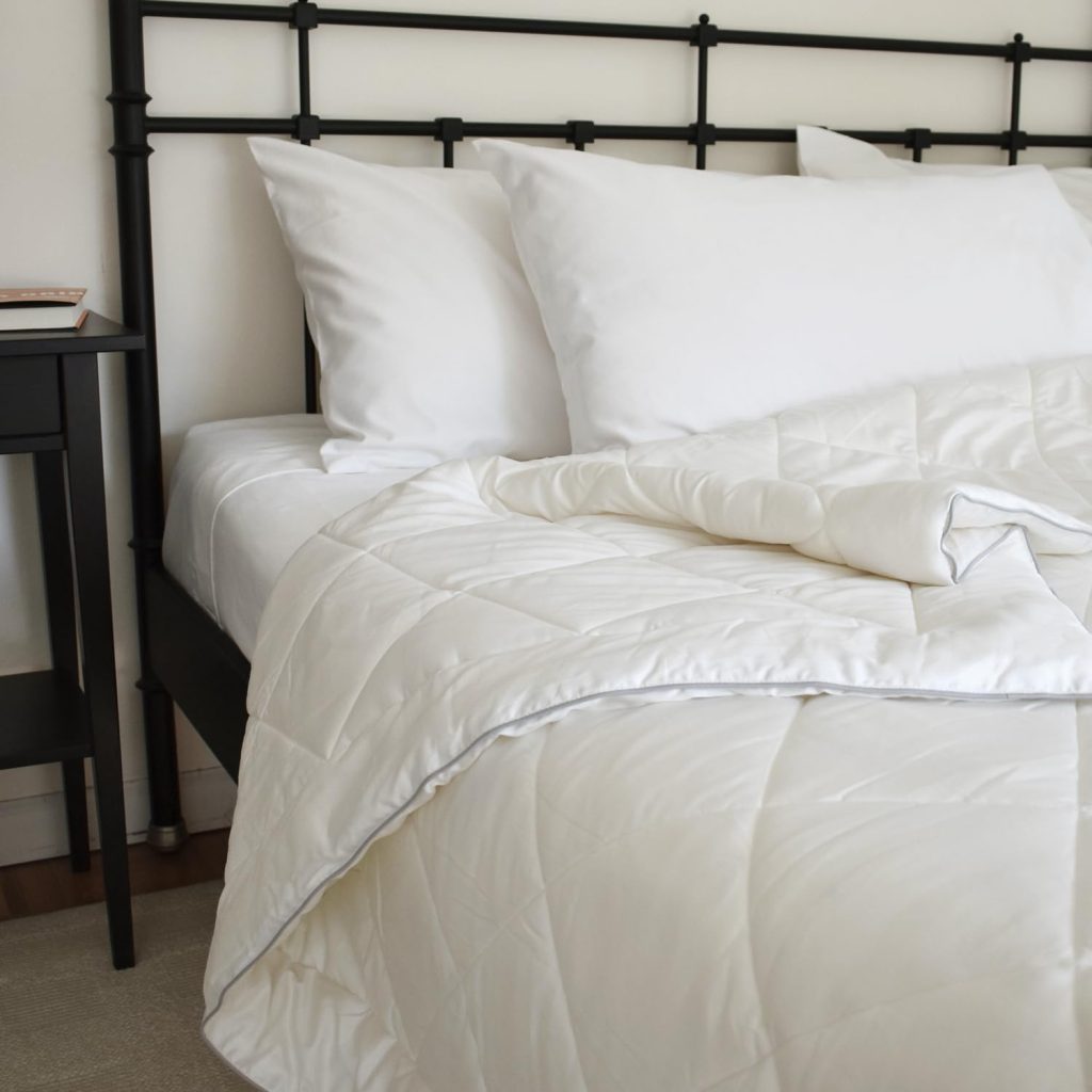 Wool and cotton duvets are a fantastic alternative to nylon or polyester options. We use this Woolino Duvet with a cotton duvet cover in our room, and it’s amazing to be able to use the same duvet in both summer and winter.
