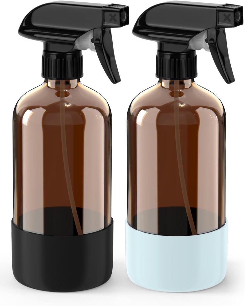 Skip the heavily branded, proprietary bottles that lock you into a specific company’s ecosystem. Buy a generic 16-ounce amber glass spray bottle with a silicone protective boot.
